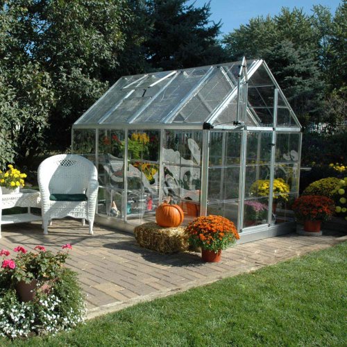 Color:Silver, Size:6' x 8' Snap & Grow 6' x 8' GreenhouseOne hallmark of a good structure is that it offers convenience to the end user; and thats exactly what our Snap & Grow Greenhouses SmartLock connector system gives you. Heavy duty aluminum frames assemble quickly without a lot of hardware. Tough crystal-clear SnapGlas panels lock into place easily, and are virtually unbreakable. Choose from lengths of 8, 12, and 16 feet. We also offer 4 extension sections, so you can quickly expand your structure. Make any backyard a sanctuaryin a snap! Corrosion Resistant Frame: Heavy duty aluminum frame withstands both the elements and moist greenhouse conditions Strength and Clarity: SnapGlas polycarbonate panels are virtually unbreakable, as crystal clear as glass, and 100% UV protected, blocking out 99.9% of harmful solar radiation. Quick Assembly: Set-up requires minimal tools and takes average of only 4 to 6 hours Adjustable Ventilation: With t